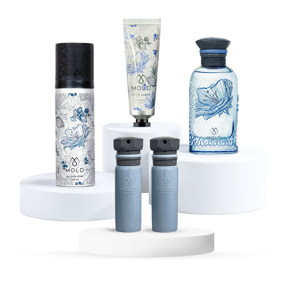 باقة وايت عنبر باقة فاخرة تجمع بين ثلاث منتجات ( عطر 100 مل - اوفر سبراي 100 مل - وكريم لليد 30مل - وعطرين 15 مل مجاناً )